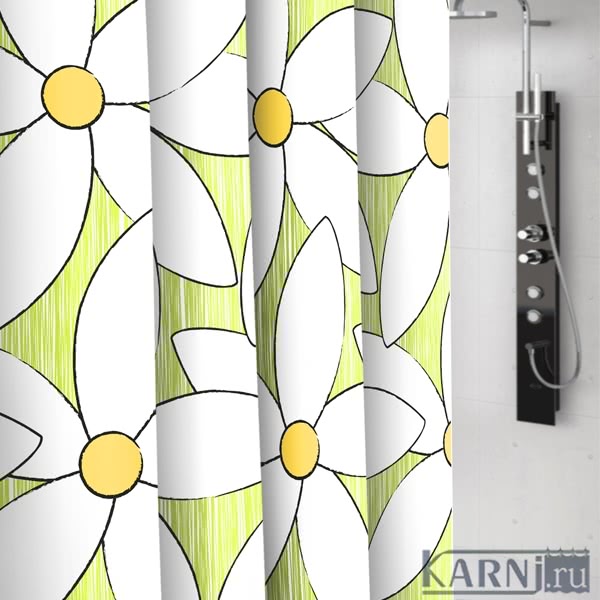 Занавеска из 100% полиэстера для ванны с 12 металлическими люверсами под кольца. Материал шторы обработан гидрофобной пропиткой, отталкивающей воду. Внизу по всей длине вшит шнур-утяжелитель.
