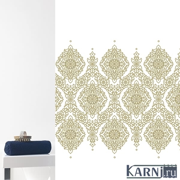 Занавеска из 100% полиэстера для ванны с 16 люверсами под кольца. Штора обработана специальной пропиткой, отталкивающей воду. Внизу по всей длине вшит шнур-утяжелитель.